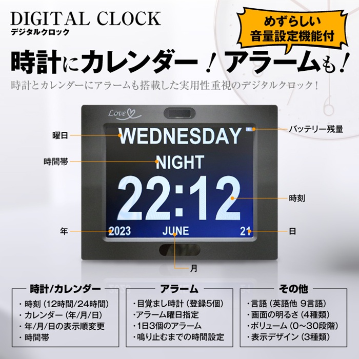 ●時計の表示も大きいので普段はお子様からお年寄りまで見やすいデジタル時計としても!