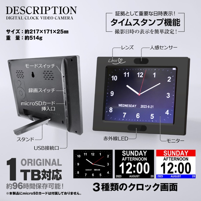 ●microSDカード1TB対応で約96時間分の録画データを保存可能!
