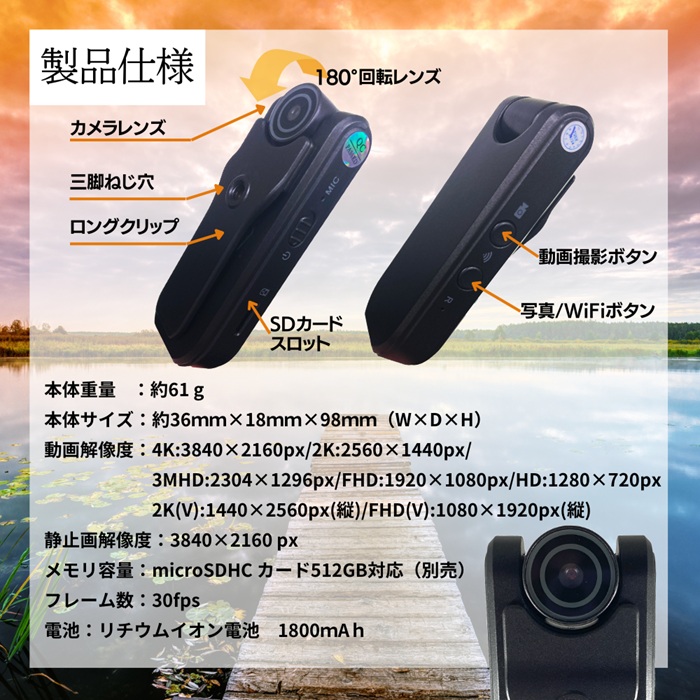 匠ブラント > 匠ブランド クリップ式カメラ KYOKUSAI 4K キョクサイ4K