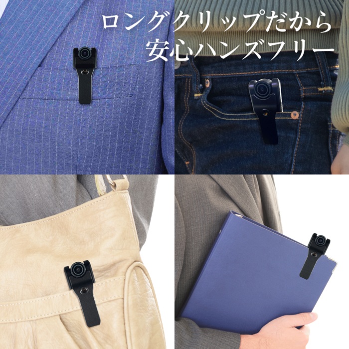 ●ロングクリップなので安心してハンズフリーで!