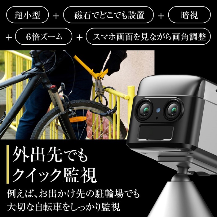●スタンド底面に強力な磁石付き!配線も不要!スマホからも画角を調整!